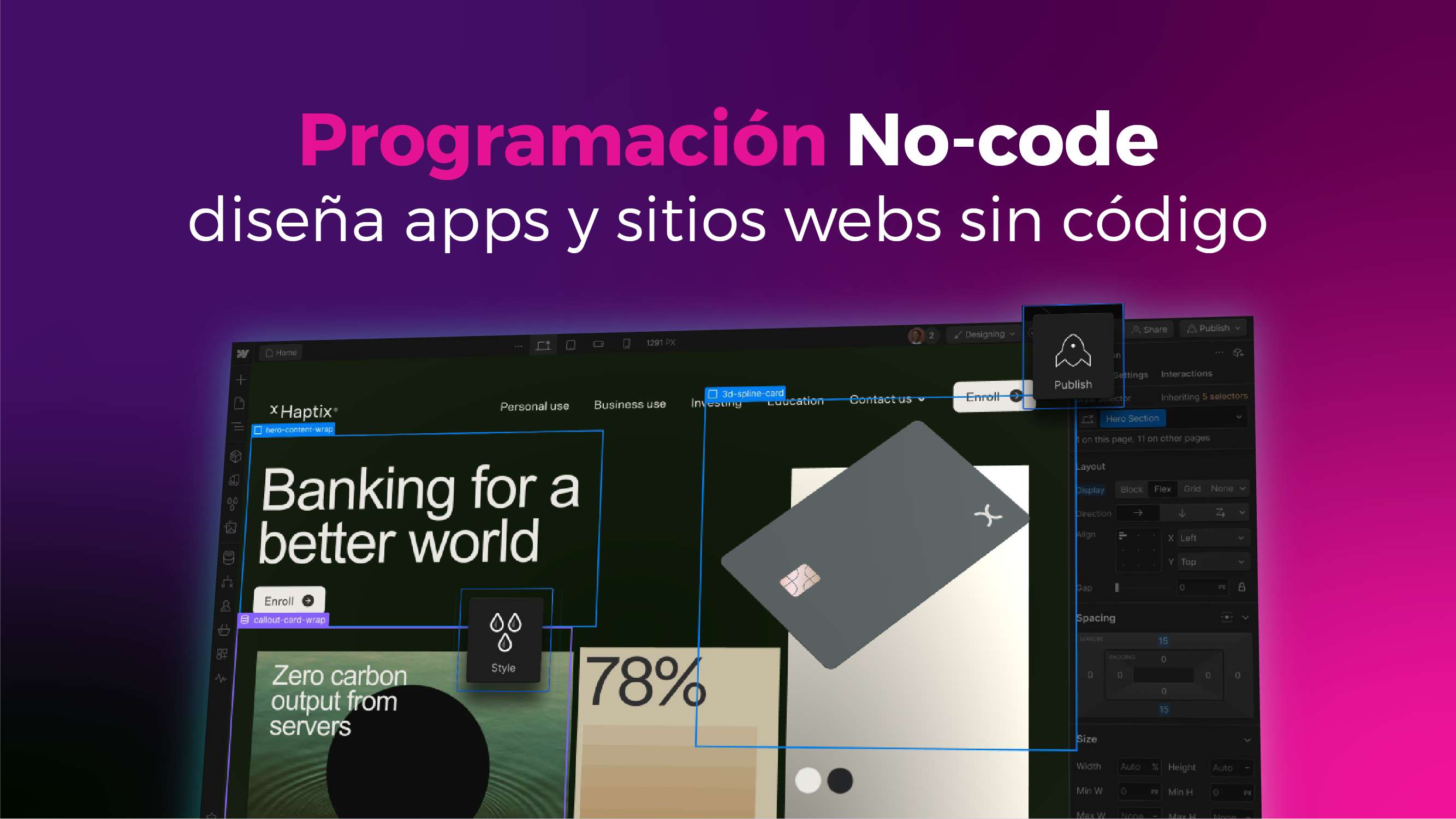 WebFlow es una plataforma completa dedicada a crear sitios y aplicaciones web con diseño responsivas con diseños profesionales y funcionalidades avanzadas. Además de su interfaz visual, cuenta con herramientas de arrastrar y soltar que permiten que los usuarios creen sitios web sin necesidad de crear código.